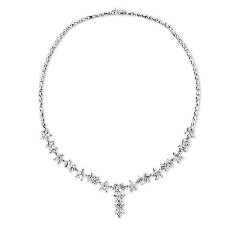 Collier 18 kt WG, 40 Nav. 2,48 ct, F-vsi, 37 Nav. 3,66 ct, F-vsi, 16 Brill. 0,74 ct, F-si, 1 Saphir 1,70 ct blau