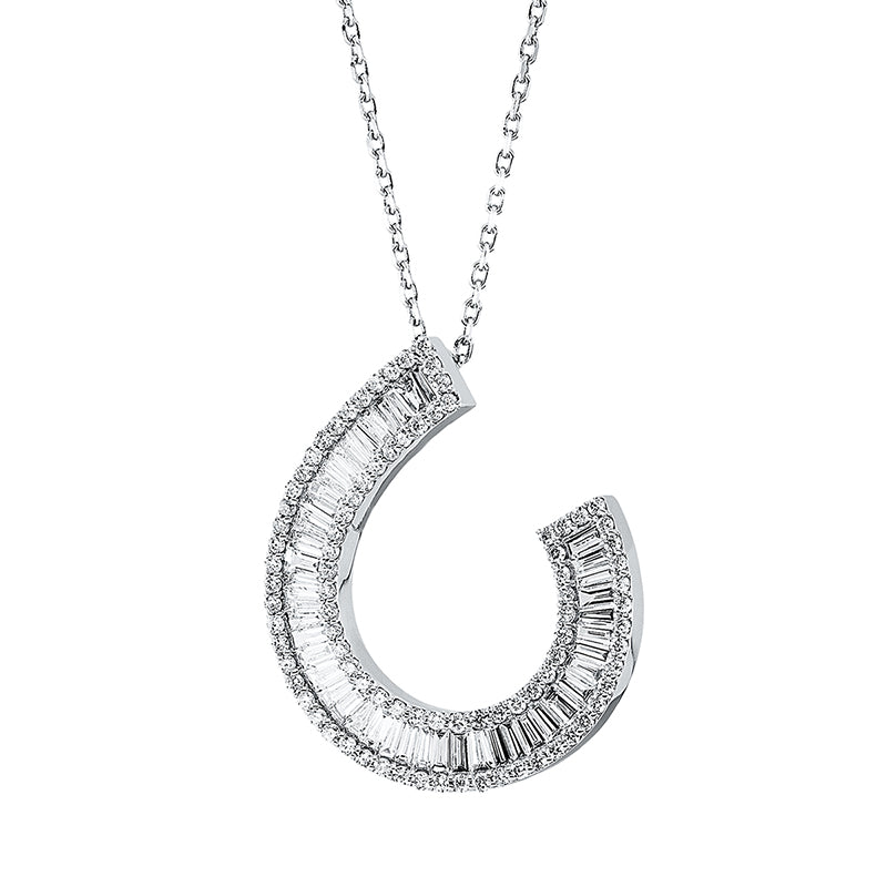 Collier 18 kt WG, 44 Bag. 0,58 ct, F-vsi, 86 Brill. 0,32 ct, F-si