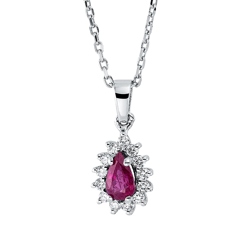 Collier 18 kt WG, mit Öse, 13 Brill. 0,12 ct, F-si, 1 Rubin 0,33 ct rot