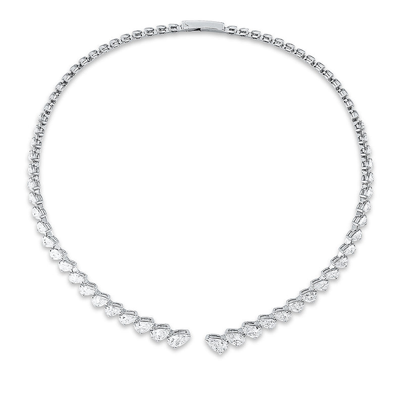 Collier 18 kt WG. GIA 6pcs. 1 Tropfen 1.01 ct. F-si. 34 Tropfen 12.16 ct. TW-si. 2 Tropfen 1.40 ct. TW-vsi/si. 2 Tropfen 1.60 ct. TW-si. 1 Tropfen 1.00 ct. W-si. L:40.6 cm