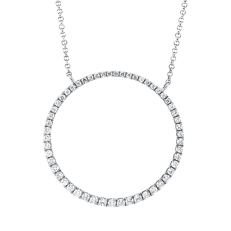 Collier 18 kt WG Kreis. mit ZÖ 38 cm + 41 cm. 54 Brillanten 0.39 ct. TW-si