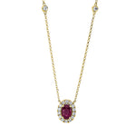 Collier 18 kt GG. mit ZÖ 38 cm + 41 cm. 16 Brillanten 0.25 ct. TW-si. 1 Rubin 0.64 ct rot. H:9.8 mm. B:7.8 mm. L:43.2 cm