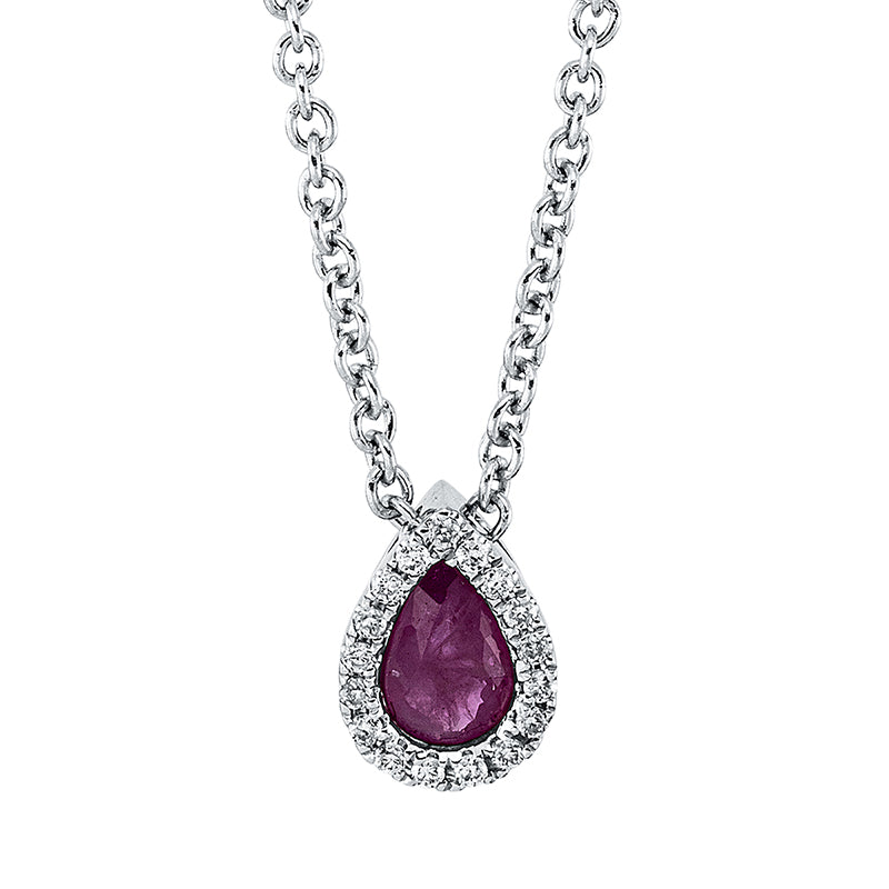 Collier 18 kt WG. mit ZÖ 40 cm. 17 Brillanten 0.04 ct. TW-si. 1 Rubin 0.23 ct rot. L:45.0 cm