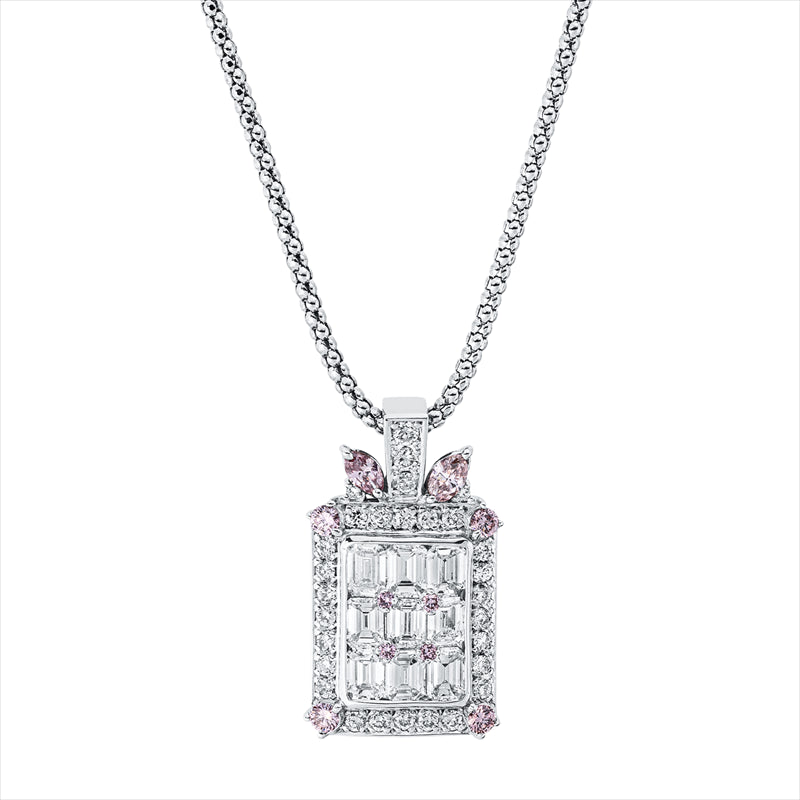 Collier 18 kt WG, mit Öse, 30 Fant-Schl. 2,36 ct, TW-si, 10 Fant-Schl. 0,45 ct, pink