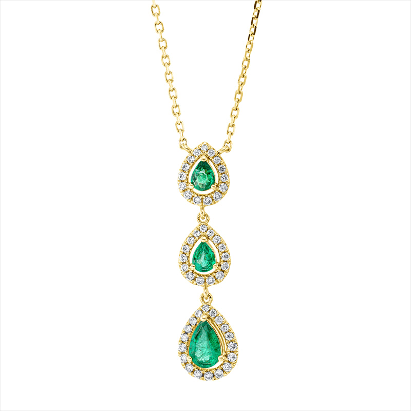 Collier 18 kt GG, mit ZÖ 40 cm & 43 cm, 48 Brill. 0,26 ct, TW-si, 3 Smaragde 0,58 ct grün
