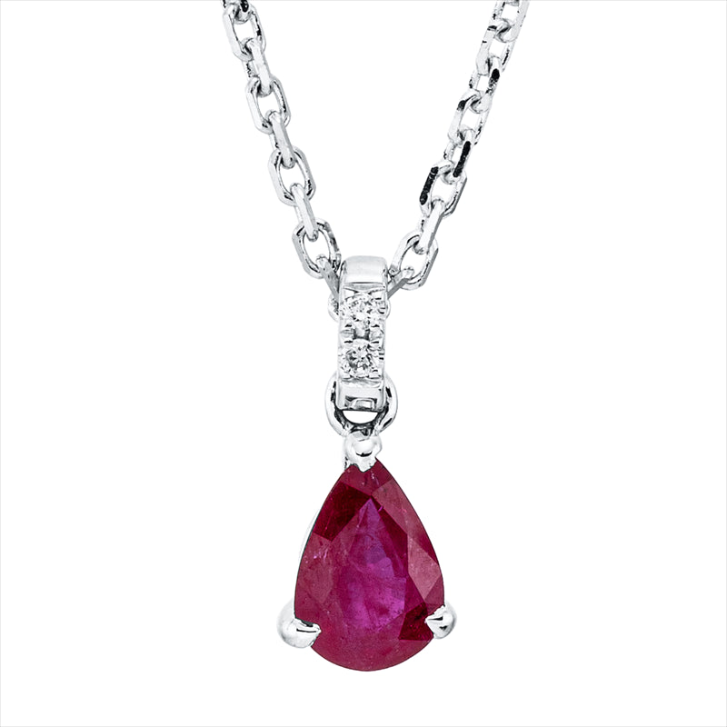 Collier 18 kt WG. mit ZÖ 40 cm & 43 cm. 2 Brillanten 0.01 ct. TW-si. 1 Rubin 0.44 ct rot. L:45.7 cm