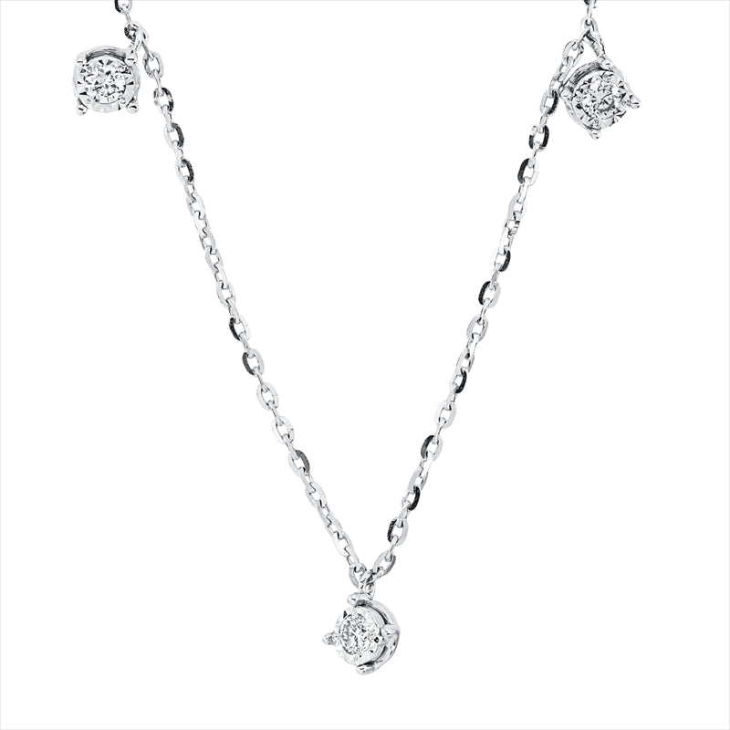 Collier 18 kt WG, mit ZÖ 40 cm + 43 cm, 5 Brill. 0,11 ct, TW-si
