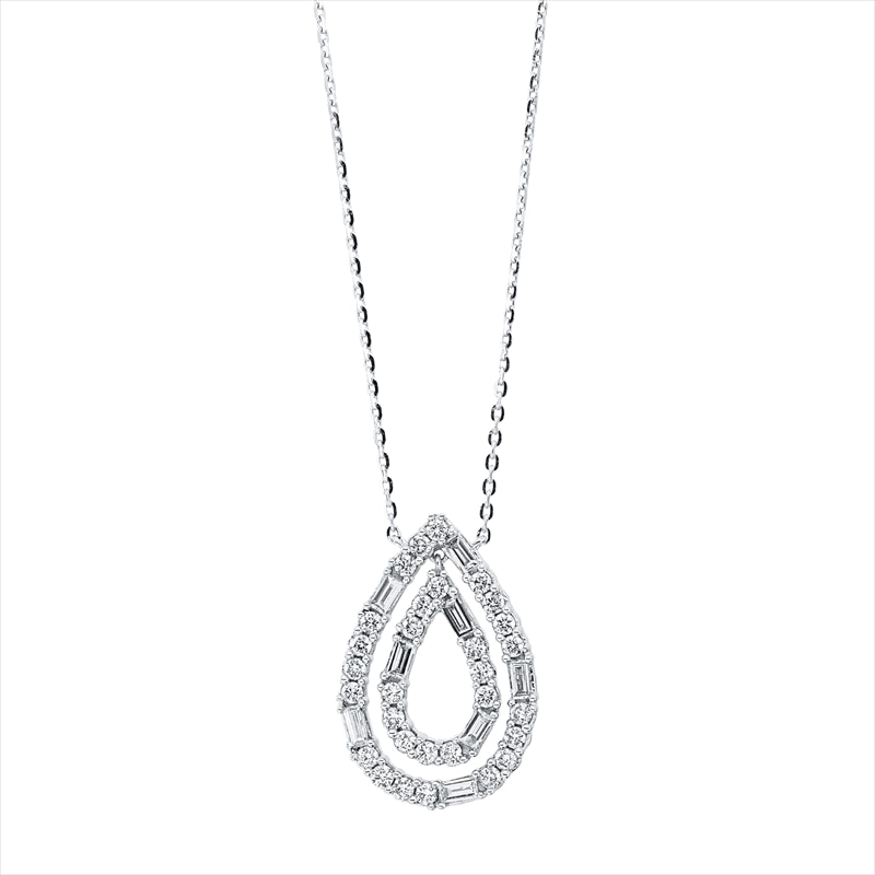 Collier 18 kt WG. mit ZÖ 40 cm + 43 cm. 8 Baguette 0.20 ct. TW-si. 30 Brillanten 0.32 ct. TW-si. L:45.0 cm