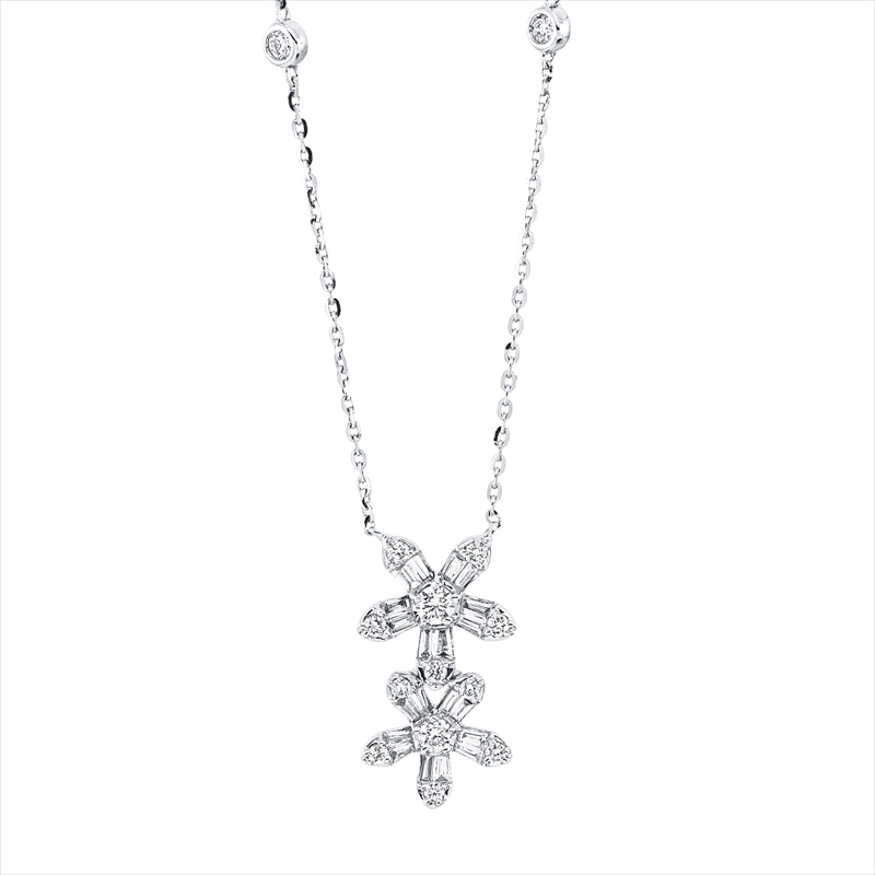 Collier 18 kt WG, mit ZÖ 40 cm + 43 cm, 20 Trap. 0,14 ct, TW-si, 16 Brill. 0,20 ct, TW-si