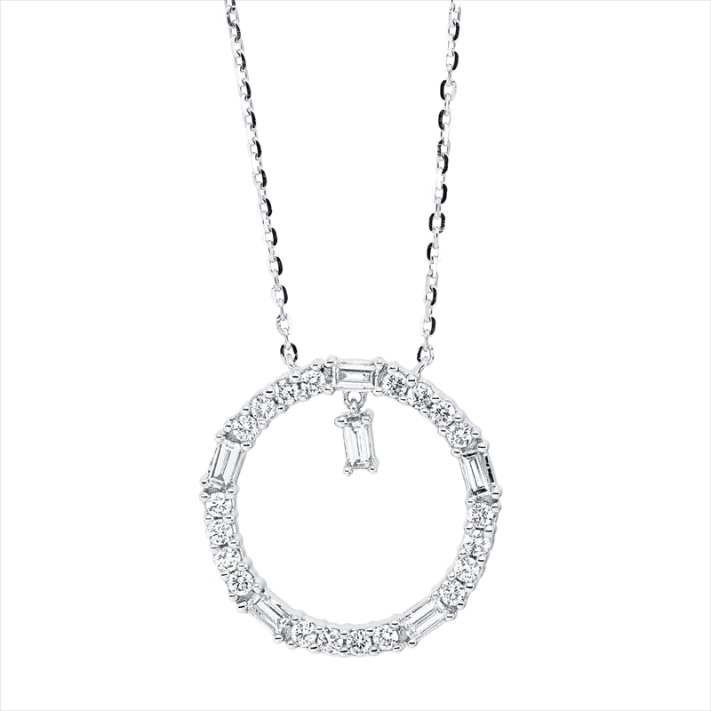 Collier 18 kt WG. mit ZÖ 40 cm + 43 cm. 6 Baguette 0.15 ct. TW-si. 20 Brillanten 0.20 ct. TW-si. L:45.0 cm