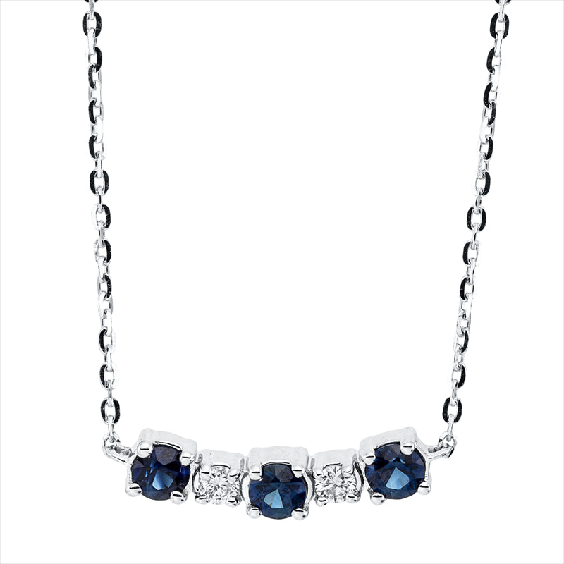Collier 18 kt WG. mit ZÖ 40 cm + 43 cm. 2 Brillanten 0.04 ct. TW-si. 3 Saphire 0.24 ct blau. L:45.0 cm