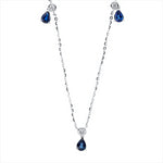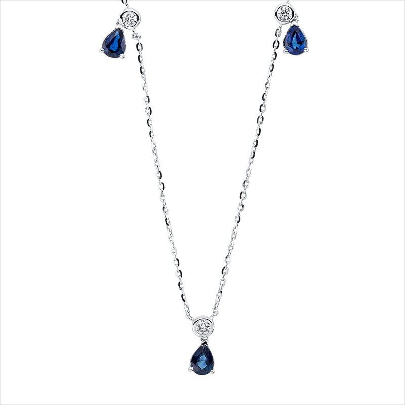 Collier 18 kt WG, mit ZÖ 40 cm + 43 cm, 3 Brill. 0,08 ct, TW-si, 3 Saphire 0,52 ct blau