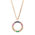 Collier 18 kt RG Kreis. mit ZÖ 40.6 cm & 43.2 cm. 4 Saphire 0.06 ct blau. 2 Saphire 0.03 ct grün. 6 Saphire 0.10 ct pink. 2 Tsavorith 0.03 ct grün. 6 Saphire 0.09 ct gelb. H:14.0 mm. B:11.5 mm. L:45.7 cm. S:1.3 mm