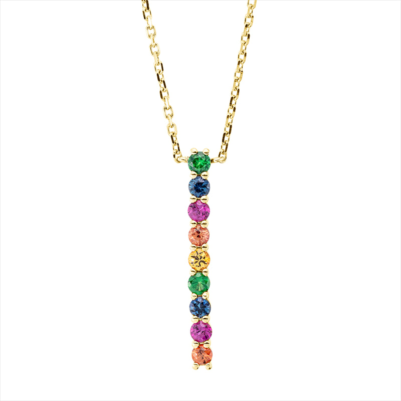 Collier 18 kt GG, 2 Rubine 0,15 ct, 2 Sap 0,16 ct orange, 2 Sap 0,18 ct, 2 Tsav 0,14 ct, 1 Sap 0,09 ct gelb