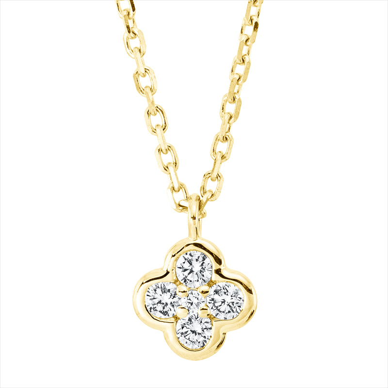 Collier 18 kt GG, Fassung rhodin, ZÖ 40,6&43,2cm, 4 Brill. 0,16 ct, TW-si, 1 Brill. 0,01 ct, TW-si