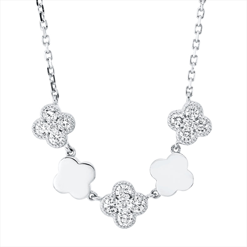 Collier 18 kt WG. mit ZÖ 40.6 cm & 43.2 cm. 4 Brillanten 0.16 ct. TW-si. 8 Brillanten 0.27 ct. TW-si. 3 Brillanten 0.02 ct. TW-si. L:45.7 cm