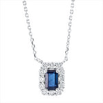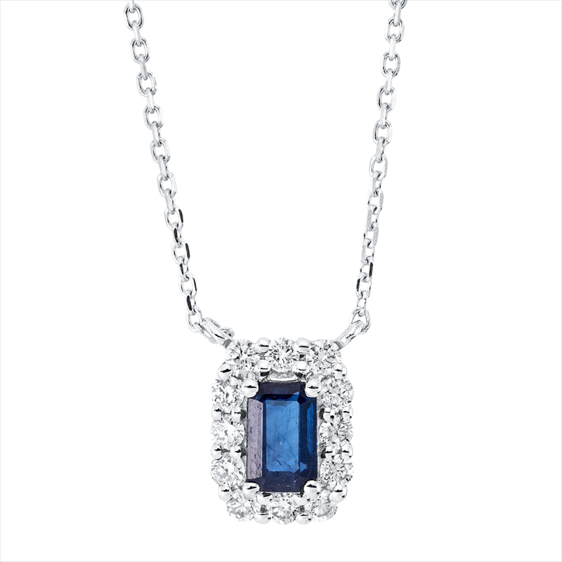Collier 18 kt WG, mit ZÖ 40,6 cm & 43,2 cm, 12 Brill. 0,20 ct, TW-si, 1 Saphir 0,38 ct blau