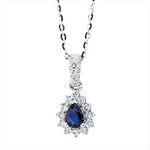 Collier 18 kt WG, mit ZÖ 40 cm + 43 cm, 1 Brill. 0,01 ct,14 Brill. 0,10 ct, TW-si, 1 Saphir 0,16 ct blau