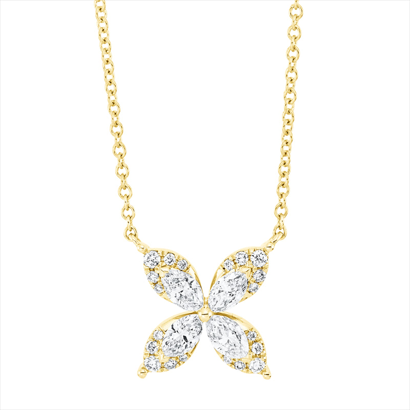 Collier 18 kt GG. mit ZÖ 38.1cm.40.6cm.43.2cm. 4 Brillanten 0.04 ct. TW-si. 4 Navette 0.42 ct. TW-si. 16 Brillanten 0.05 ct. TW-si. H:11.6 mm. B:11.9 mm. L:45.7 cm. S:3.3 mm