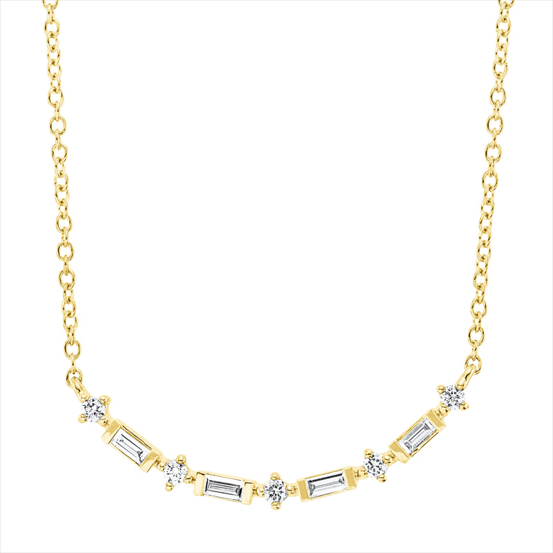 Collier 18 kt GG. mit ZÖ 38cm.40.6cm.43.2cm. 4 Baguette 0.12 ct. TW-si. 5 Brillanten 0.10 ct. TW-si. L:45.7 cm