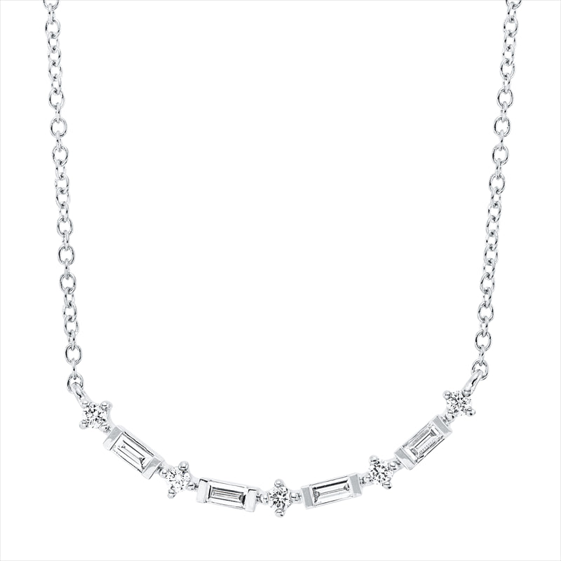 Collier 18 kt WG. mit ZÖ 38cm.40.6cm.43.2cm. 4 Baguette 0.10 ct. TW-si. 5 Brillanten 0.10 ct. TW-si. L:45.7 cm