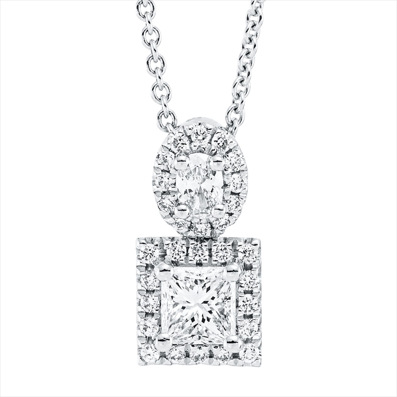 Collier 18 kt WG. mit ZÖ 40 cm. 1 Oval 0.10 ct. TW-vsi. 1 Princ. 0.39 ct. TW-vsi. 28 Brillanten 0.14 ct. TW-vsi. L:45.0 cm