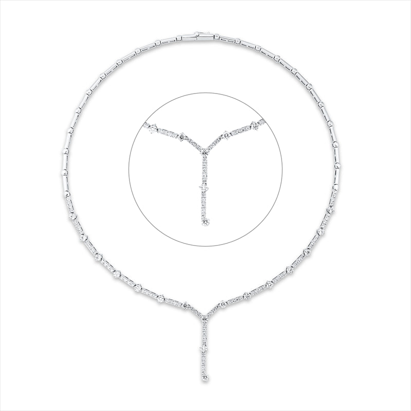 Collier 18 kt WG Y-Collier. 17 Brillanten 2.02 ct. TW-vsi. 74 Brillanten 1.05 ct. TW-vsi. L:43.0 cm