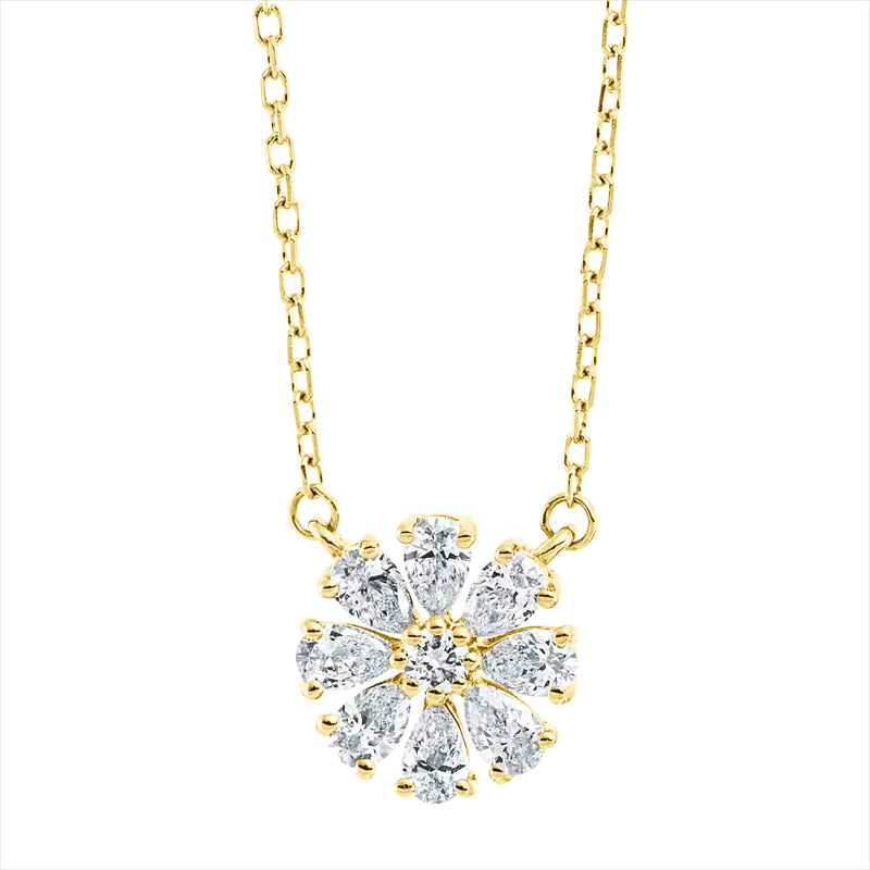 Collier 18 kt GG. mit ZÖ 40 cm. 8 Tropfen 0.39 ct. TW-vsi. 1 Brill. 0.03 ct. TW-si. L:45.7 cm