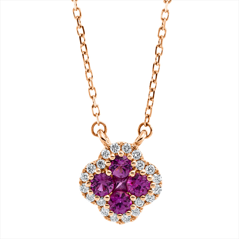 Collier 18 kt RG, mit ZÖ 40 cm, 20 Brill. 0,10 ct, TW-si, 5 Saphire 0,37 ct pink
