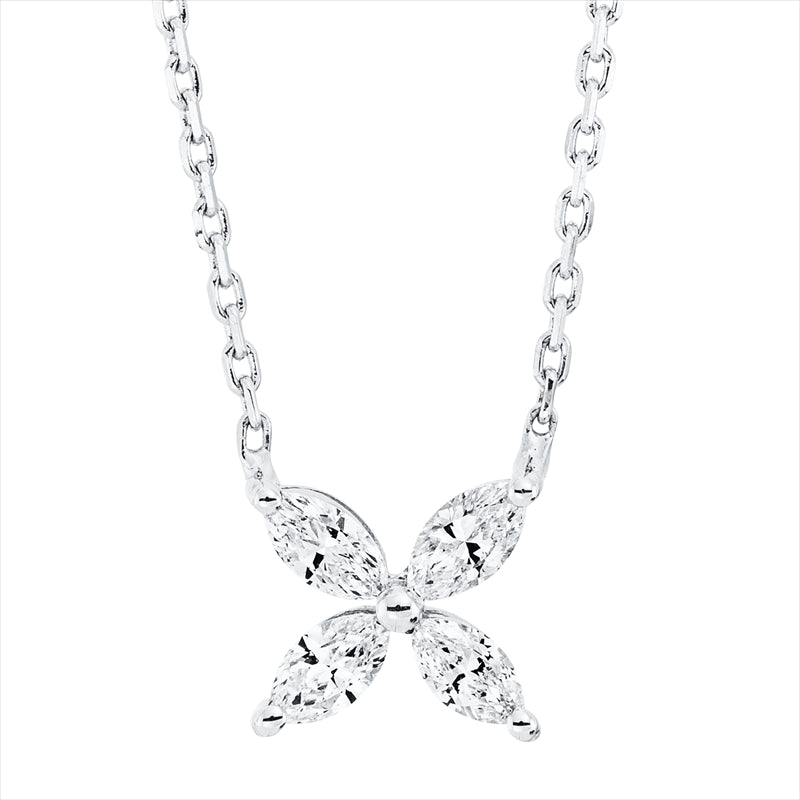 Collier 18 kt WG. 4 Navette 0.32 ct. F-si. L:45.7 cm