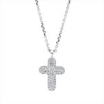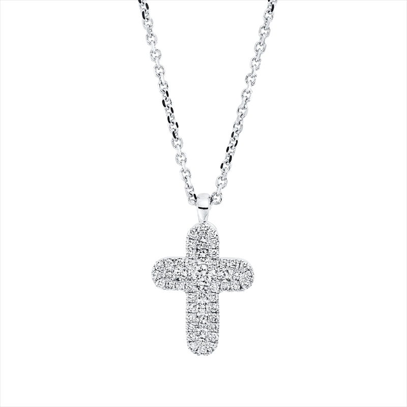 Collier 18 kt WG Kreuz. mit ZÖ 40 cm + 43 cm. 49 Brillanten 0.44 ct. W-vsi. L:45.7 cm