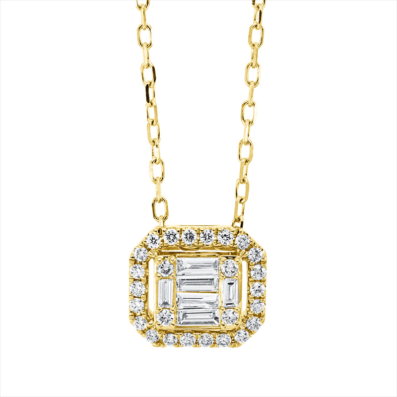 Collier 18 kt GG. 2 Baguette 0.02 ct. TW-si. 4 Baguette 0.10 ct. TW-si. 26 Brillanten 0.14 ct. TW-si. L:45.7 cm