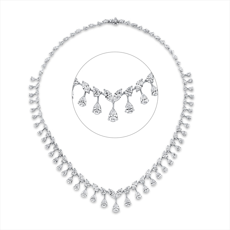 Collier 18 kt WG. 69 Tropfen 11.88 ct. F-vsi/si. 2 Tropfen 1.05 ct. TW-vvs. 1 Tropfen 0.70 ct. TW-vsi. 34 Navette 7.11 ct. F-vsi/si. L:42.0 cm