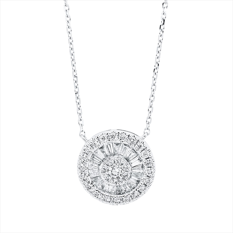 Collier 18 kt WG. mit ZÖ 40 cm. 20 Trapeze 0.19 ct. TW-si. 31 Brillanten 0.17 ct. TW-si. L:45.0 cm