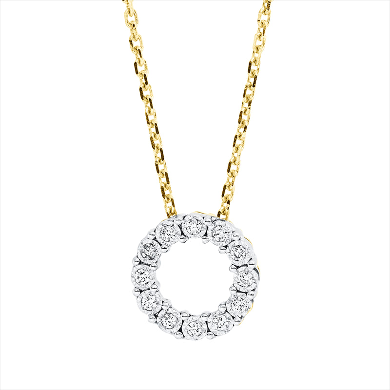 Collier 18 kt GG Kreis. mit ZÖ 42 cm. 12 Brillanten 0.04 ct. TW-si. L:45.0 cm