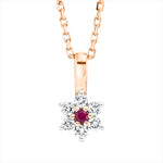 Collier 18 kt RG, mit ZÖ 42 cm, 6 Brill. 0,07 ct, TW-si, 1 Rubin 0,02 ct