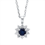 Collier 18 kt WG, mit ZÖ 42 cm, 10 Brill. 0,09 ct, TW-si, 1 Saphir 0,16 ct blau