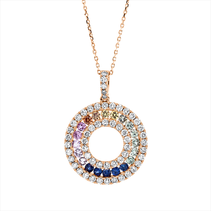 Collier 18 kt RG, mit ZÖ 40 cm, 55 Brill. 0,70 ct, TW-si, 20 Saphire 0,95 ct fancy