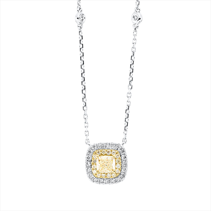 Collier 18 kt WG+GG. 6 Brillanten 0.10 ct. TW-si. 20 Brillanten 0.12 ct. TW-si. 16 Brillanten 0.08 ct. gelb. H:8.8 mm. B:8.9 mm. L:43.2 cm. S:4.2 mm