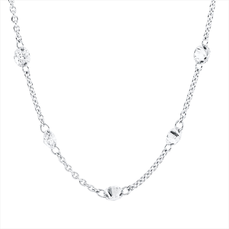 Collier 18 kt WG, mit ZÖ 40,6 cm + 41,9cm, 5 Brill. 0,53 ct, TW-si
