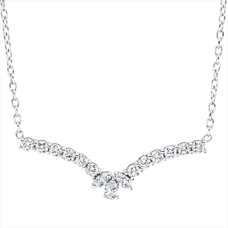 Collier 18 kt WG, 1 Tropfen 0,10 ct, TW-vsi, 2 Nav. 0,13 ct, TW-vsi, 12 Brill. 0,54 ct, TW-si