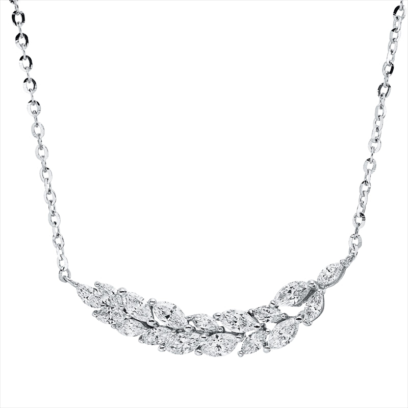 Collier 18 kt WG. mit ZÖ 40 cm. 17 Navette 0.83 ct. TW-vsi. L:45.7 cm