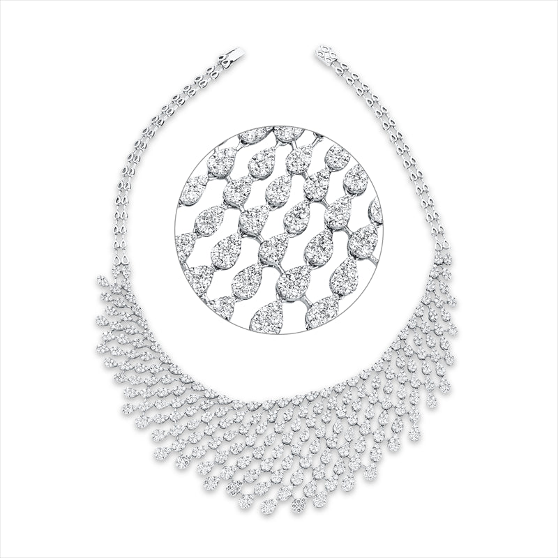 Collier 18 kt WG. 952 Brillanten 17.00 ct. TW-si. 327 Brillanten 1.71 ct. TW-si. L:40.6 cm