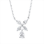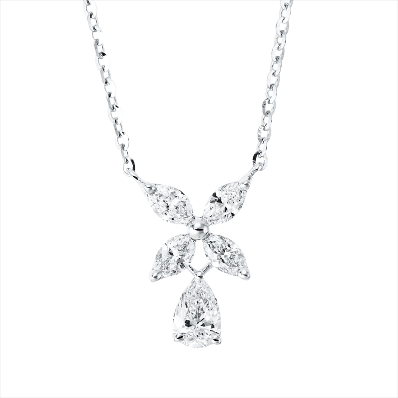 Collier 18 kt WG. mit ZÖ 40 cm. 1 Tropfen 0.27 ct. TW-vsi. 4 Navette 0.39 ct. TW-vsi. L:45.7 cm