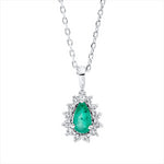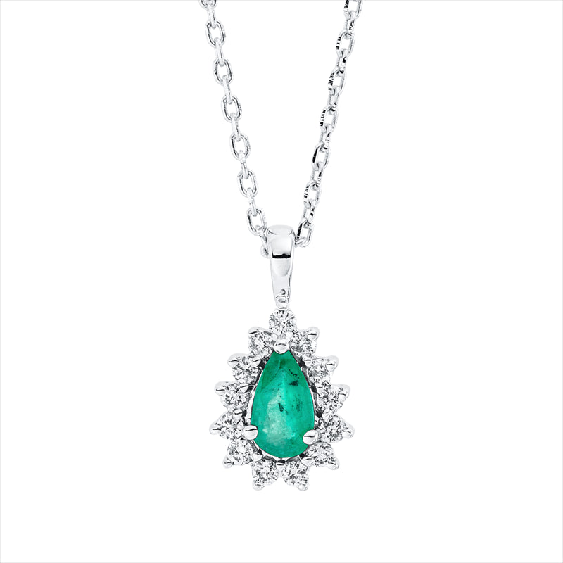 Collier 18 kt WG Tropfen. mit ZÖ 42 cm. 13 Brillanten 0.09 ct. TW-si. 1 Smaragd 0.14 ct grün. L:45.0 cm