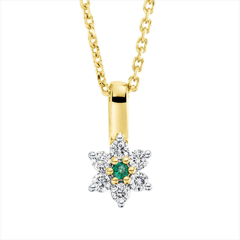 Collier 18 kt GG, mit ZÖ 42 cm, 6 Brill. 0,08 ct, TW-si, 1 Smaragd 0,02 ct grün