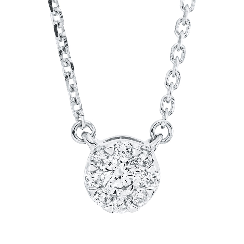 Collier 18 kt WG. mit ZÖ 42 cm. 1 Brill. 0.05 ct. TW-si. 8 Brillanten 0.05 ct. TW-si. L:45.0 cm
