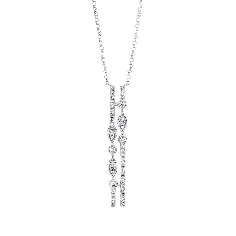 Collier 18 kt WG. mit ZÖ 40 & 43 cm. 7 Brillanten 0.12 ct. TW-si. 35 Brillanten 0.21 ct. TW-si. L:45.7 cm