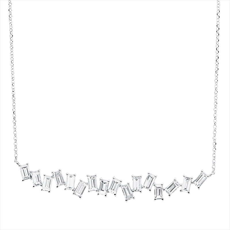 Collier 18 kt WG. mit ZÖ 38cM. 40.5 cm. 16 Baguette 1.58 ct. TW-si. L:43.0 cm