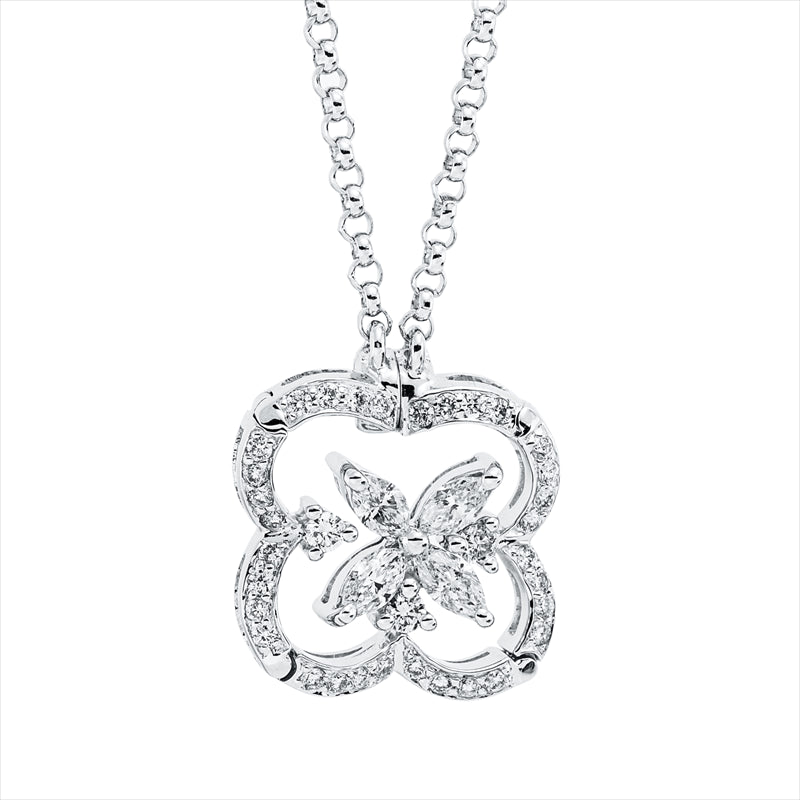 Collier 18 kt WG, 4 Nav. 0,33 ct, TW-si, 35 Brill. 0,27 ct, TW-si